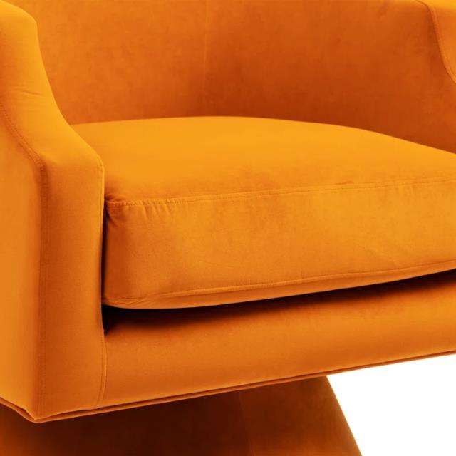 Orange Velvet Swivel Barrel Chair